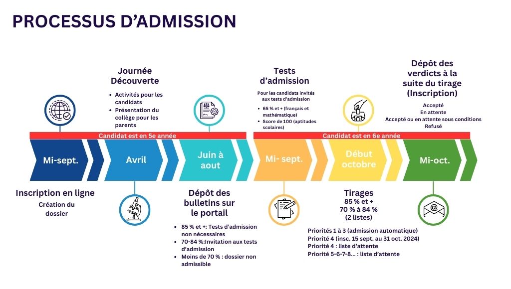 Le collège reçoit toutes les inscriptions des candidats qui sont en 5e année du primaire du 15 septembre au 31 octobre.
